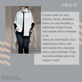 O TRICÔ É A TRAMA QUE COATURA SUA PERSONALIDADE AO SEU ESTILO: